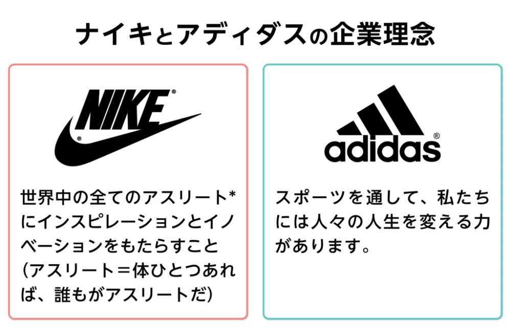 ナイキとアディダスの企業理念を見てみましょう。