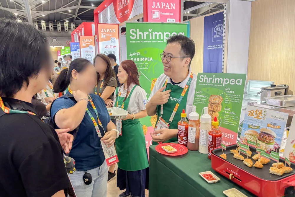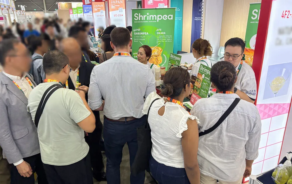 会場は、各国から多数の食品関連バイヤー・飲食事業者が集まる国際的な舞台。Shrimpeaは、日本パビリオン内にブースを構え、植物性エビを使った「CRISPY OKARA NUGGETS」をお披露目しました。